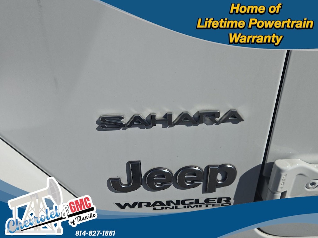 At Chevrolet and GMC of Titusville we believe that your car buying experience should be an enjoyable one. Its our goal to exceed your expectations in every way so that each and every time your family needs a car or truck, you know exactly where to go. We set out to accomplish that by staying firmly rooted in our values of integrity and professionalism in order to provide you with a truly superior customer service experience. A proud member of the Dean Auto Group, were sure youll find the quality new or used vehicle you want from the manufacturers you love! Find exactly what youre looking for at a price that makes you smile... This 2022 Jeep Wrangler Unlimited Sahara has a beautiful Bright White Clearcoat exterior with Black interior. This vehicle has 29,668 miles has been thoroughly inspected by our factory trained service technicians and has been fully reconditioned for immediate delivery. We're happy to provide this Wrangler's CARFAX vehicle history report upon request as well. Carfax No Accidents! Carfax One Owner! IMPORTANT PACKAGE INFORMATION Cold Weather Group ($895 value)Heated Front SeatsHeated Steering Wheel255/70R18 All-Terrain TiresGoodyear Brand TiresQuick Order Package 23GQuick Order Package 24G (disc)LED Lighting Group ($1,595 value)LED TaillampsFront LED Fog LampsLED Premium Reflector HeadlampsDaytime Running Lamps LED Accents Comfort Heated steering wheel - A warm touch. Trying to drive with bulky winter gloves on isn't always easy. Keep your hands warm in cold temperatures so you can ditch the mitts and get a firm grip with this heated steering wheel.Convenience Keyfob engine start control - Get an early start. Remotely start your vehicle's engine from the key fob, ensuring your ride is ready to go when you get in. Now you can stay comfortable inside while your vehicle gets comfortable outside, thanks to Keyfob engine start control.Technology and Telematics Smart device mirroring - Smartphone, meet smart car. You can control your device through your vehicle's infotainment system. Smart device mirroring brings together safety and convenience by making it easier to find what you're looking for while keeping your eyes on the road. Voice activated integrated navigation system - A to B made easy! Whether it's an errand or a road trip, the voice activated integrated navigation system will guide you to your destination. No more bulky, impossible-to-fold maps, and no more stopping to ask for directions. Just tell it where you want to go, and the voice activated integrated navigation system shows you the right way. Wireless connectivity - Strike the cord. Wireless technology makes it easy to place calls without having to fumble with your phone. It integrates your device with the system inside your vehicle for hands-free access. Keep connected and keep your hands on the wheel with wireless connectivity. ENGINE: 3.6L V6 24V VVT UPG I W/ESS, TRANSMISSION: 8-SPEED AUTOMATIC (850RE), QUICK ORDER PACKAGE 24G, 3.45 REAR AXLE RATIO, WHEELS: 18" X 7.5" POLISHED W/GRAY SPOKES, TIRES: 255/70R18 ALL-TERRAIN, BRIGHT WHITE CLEARCOAT, BLACK, PREMIUM MCKINLEY TRIMMED SEATS, GVWR: 5,500 LBS, LED LIGHTING GROUP, COLD WEATHER GROUP, BODY COLOR 3-PIECE HARD TOP, FRONT LICENSE PLATE BRACKET, REMOTE START SYSTEM We value-price our vehicles to assure our customers get an easy & notable car buying experience. With every New & Pre-Owned purchase you become part of our Chevrolet and GMC of Titusville family, and being a family member has benefits: 1. Complimentary PA State Inspections for the Life of the Vehicle (dealer covers inspection fee, customer responsible for applicable sticker fees) 2. Lifetime Powertrain Warranty (some exclusions apply) 3. Complimentary 21-point inspection and safety check for the life of the vehicle with ANY service appointment *Valid for vehicles purchased after 1/1/2025. **Offers not redeemable for cash. Due to heavily discounted market based pricing, vehicles are selling more quickly than our website updates. To v