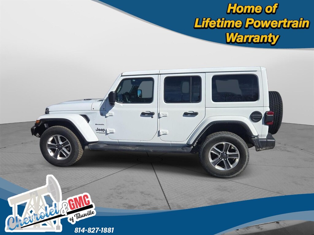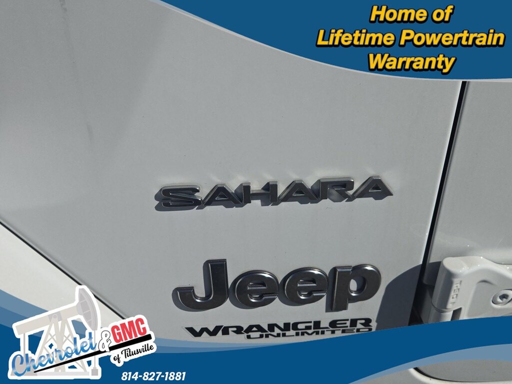 At Chevrolet and GMC of Titusville we believe that your car buying experience should be an enjoyable one. Its our goal to exceed your expectations in every way so that each and every time your family needs a car or truck, you know exactly where to go. We set out to accomplish that by staying firmly rooted in our values of integrity and professionalism in order to provide you with a truly superior customer service experience. A proud member of the Dean Auto Group, were sure youll find the quality new or used vehicle you want from the manufacturers you love! Find exactly what youre looking for at a price that makes you smile... This 2022 Jeep Wrangler Unlimited Sahara has a beautiful Bright White Clearcoat exterior with Black interior. This vehicle has 29,668 miles has been thoroughly inspected by our factory trained service technicians and has been fully reconditioned for immediate delivery. We're happy to provide this Wrangler's CARFAX vehicle history report upon request as well. Carfax No Accidents! Carfax One Owner! IMPORTANT PACKAGE INFORMATION Cold Weather Group ($1,195 value)Heated Front SeatsHeated Steering Wheel255/70R18 All-Terrain TiresGoodyear Brand TiresRemote Start SystemQuick Order Package 23GQuick Order Package 24G (disc)LED Lighting Group ($1,595 value)LED TaillampsFront LED Fog LampsLED Premium Reflector HeadlampsDaytime Running Lamps LED Accents Comfort Heated steering wheel - A warm touch. Trying to drive with bulky winter gloves on isn't always easy. Keep your hands warm in cold temperatures so you can ditch the mitts and get a firm grip with this heated steering wheel.Convenience Keyfob engine start control - Get an early start. Remotely start your vehicle's engine from the key fob, ensuring your ride is ready to go when you get in. Now you can stay comfortable inside while your vehicle gets comfortable outside, thanks to Keyfob engine start control.Technology and Telematics Smart device mirroring - Smartphone, meet smart car. You can control your device through your vehicle's infotainment system. Smart device mirroring brings together safety and convenience by making it easier to find what you're looking for while keeping your eyes on the road. Voice activated integrated navigation system - A to B made easy! Whether it's an errand or a road trip, the voice activated integrated navigation system will guide you to your destination. No more bulky, impossible-to-fold maps, and no more stopping to ask for directions. Just tell it where you want to go, and the voice activated integrated navigation system shows you the right way. Wireless connectivity - Strike the cord. Wireless technology makes it easy to place calls without having to fumble with your phone. It integrates your device with the system inside your vehicle for hands-free access. Keep connected and keep your hands on the wheel with wireless connectivity. ENGINE: 3.6L V6 24V VVT UPG I W/ESS, TRANSMISSION: 8-SPEED AUTOMATIC (850RE), QUICK ORDER PACKAGE 24G, 3.45 REAR AXLE RATIO, WHEELS: 18" X 7.5" POLISHED W/GRAY SPOKES, TIRES: 255/70R18 ALL-TERRAIN, BRIGHT WHITE CLEARCOAT, BLACK, PREMIUM MCKINLEY TRIMMED SEATS, GVWR: 5,500 LBS, LED LIGHTING GROUP, COLD WEATHER GROUP, BODY COLOR 3-PIECE HARD TOP, FRONT LICENSE PLATE BRACKET, REMOTE START SYSTEM We value-price our vehicles to assure our customers get an easy & notable car buying experience. With every New & Pre-Owned purchase you become part of our Chevrolet and GMC of Titusville family, and being a family member has benefits: 1. Complimentary PA State Inspections for the Life of the Vehicle (dealer covers inspection fee, customer responsible for applicable sticker fees) 2. Lifetime Powertrain Warranty (some exclusions apply) 3. Complimentary 21-point inspection and safety check for the life of the vehicle with ANY service appointment *Valid for vehicles purchased after 1/1/2025. **Offers not redeemable for cash. Due to heavily discounted market based pricing, vehicles are selling more quickly than our