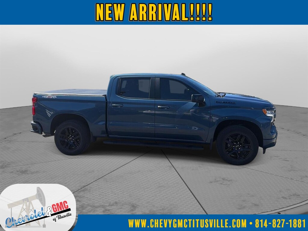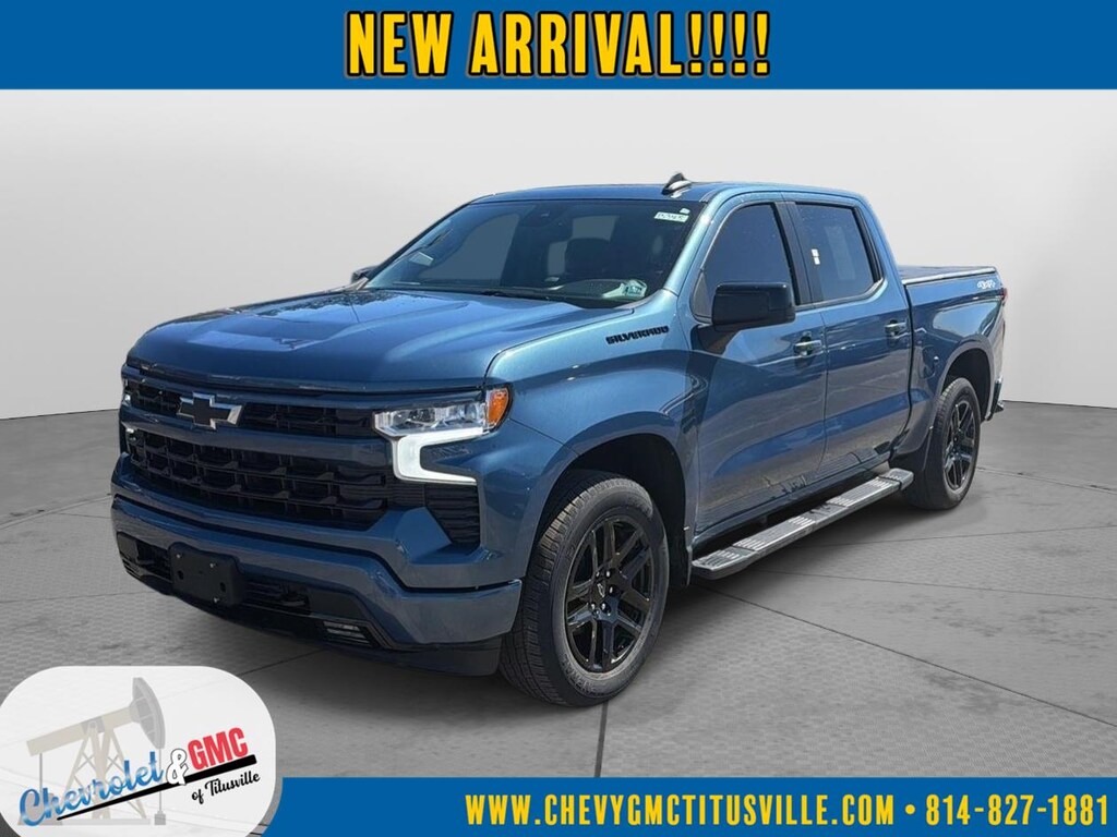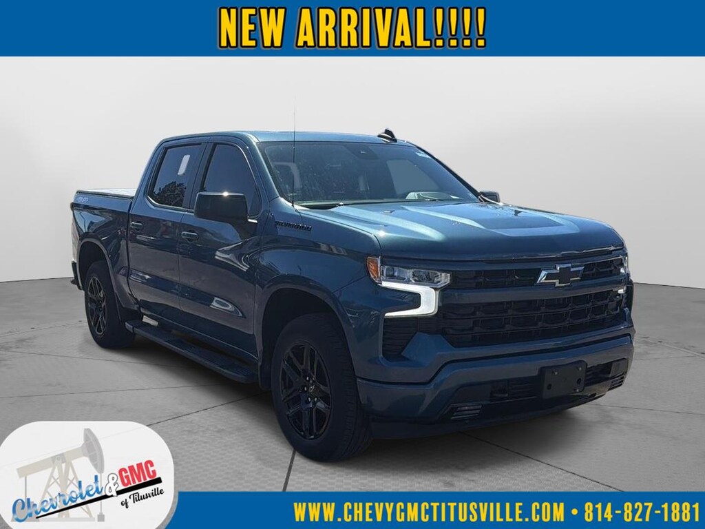 At Chevrolet and GMC of Titusville we believe that your car buying experience should be an enjoyable one. Its our goal to exceed your expectations in every way so that each and every time your family needs a car or truck, you know exactly where to go. We set out to accomplish that by staying firmly rooted in our values of integrity and professionalism in order to provide you with a truly superior customer service experience. A proud member of the Dean Auto Group, were sure youll find the quality new or used vehicle you want from the manufacturers you love! Find exactly what youre looking for at a price that makes you smile... This 2024 Chevrolet Silverado 1500 RST has a beautiful Lakeshore Blue Metallic exterior with Jet Black interior. This vehicle has 47,424 miles has been thoroughly inspected by our factory trained service technicians and has been fully reconditioned for immediate delivery. We're happy to provide this Silverado 1500's CARFAX vehicle history report upon request as well. Carfax No Accidents! IMPORTANT PACKAGE INFORMATION Convenience Package IIPower Sliding Rear Window with Rear DefoggerIntegrated Trailer Brake ControllerHitch Guidance with Hitch ViewIn-Vehicle Trailering System AppUniversal Home RemotePremium Bose 7-Speaker Sound SystemDark Essentials Package ($465 value)Black Name PlatesBlack Tailgate CHEVROLET LetteringLeather Package ($1,255 value)Leather-Appointed Front Seat TrimUp-Level Rear Seat with Storage PackageTrue North Edition Plus ($1,445 value)Preferred Equipment Group 1SPSiriusXM with 360LRear 60/40 Folding Bench Seat (folds Up)Power Front Windows with Passenger Express DownPower Rear Windows with Express DownDeep-Tinted GlassPower Front Windows with Driver Express Up/downColour-Keyed Carpeting Floor CoveringFront Rubberized Vinyl Floor MatsRear Rubberized-Vinyl Floor MatsBluetooth For PhoneInside Rearview Mirror with TiltHeated Power-Adjustable Outside MirrorsHigh Gloss Black Mirror CapsAuto-Locking Rear DifferentialElectronic Cruise ControlElectrical Steering Column LockSingle-Speed Transfer CaseConvenience PackageTrue North EditionChevy Safety AssistStandard TailgateEZ Lift Power Lock and Release TailgateFront LED Fog Lamps12.3" Multicolour Reconfigurable Digital DisplayOnStar and Chevrolet Connected Services CapableLED Cargo Area LightingSteering Wheel Audio Controls6-Speaker Audio SystemHD Rear Vision CameraFront Frame-Mounted Black Recovery HooksTrailering PackageProtection Package ($805 value)Rear Wheelhouse LinersChevytec Spray-On Black Bedliner Safety and Security Forward collision mitigation - Forward thinking. You look away for just a second and suddenly the vehicle in front of you has stopped. That's when the forward collision mitigation system comes to life. When it senses an impending impact, it will activate a combination of features to help prevent or reduce the severity of an accident. Forward collision mitigation is always looking ahead. Pedestrian impact prevention - An extra step toward safety. Pedestrians don't always stop, look, and listen, but with Pedestrian Impact Prevention, your vehicle is equipped to better see them and avoid them. This system constantly monitors the road ahead to identify and track pedestrians. It projects that image to an interior display screen, AND should an impact become likely, Pedestrian impact prevention takes steps to avoid a collision. Rear camera - Watching your back! The rear camera helps you see obstacles and hazards you otherwise couldn't by showing enhanced images of what is behind you. The rear camera is an extra set of eyes that's both convenient and safe.Technology and Telematics Apple CarPlay/Android Auto smart device wireless mirroring Mobile hotspot - WiFi on the fly. Connect your devices to the Internet through your vehicles private mobile hotspot and take the internet wherever your journey takes you, without eating up your data allowance. Find the hotspot with mobile hotspot. ENGINE, 5.3L ECOTEC3 V8 We value-price our vehicles