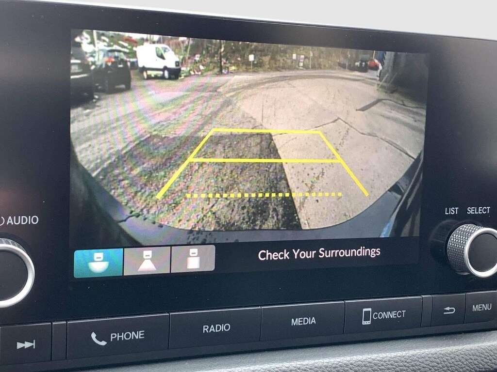 - The vehicle is equipped with a camera that displays an image of the area behind the vehicle on an interior display.