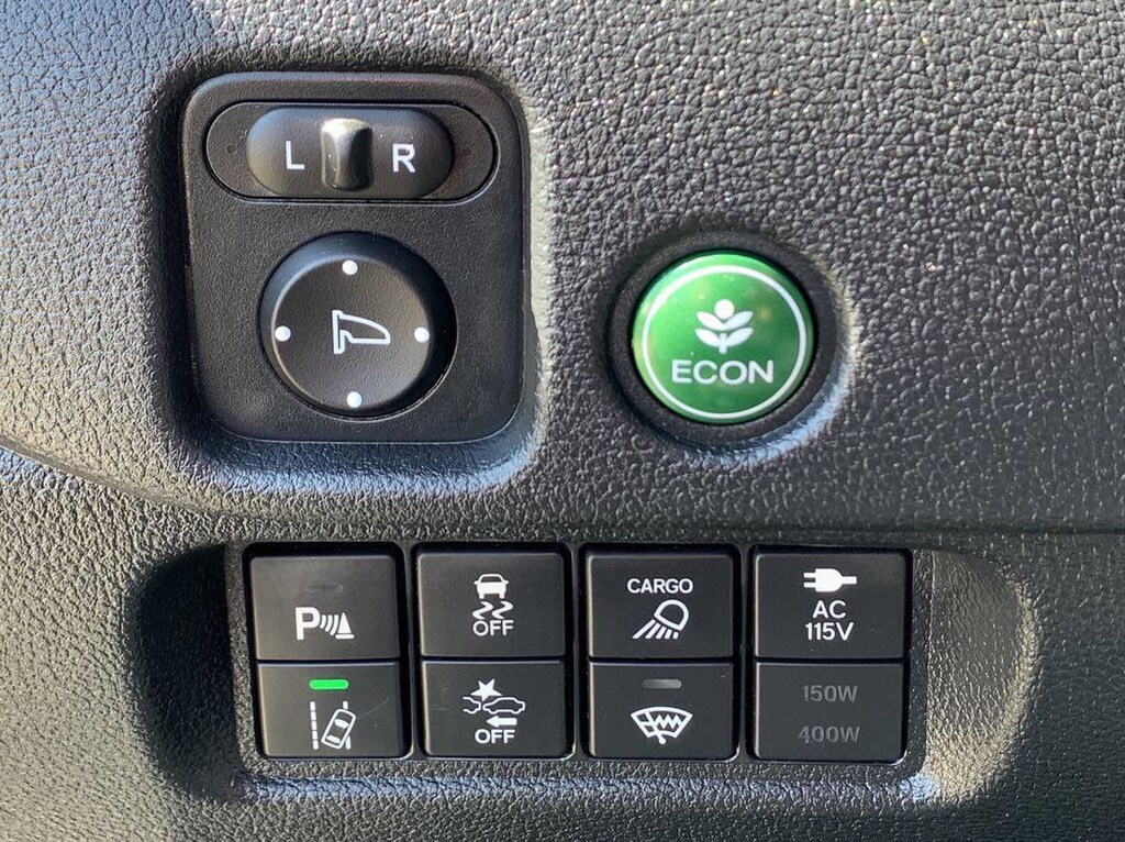 - The vehicle is equipped with a camera that displays an image of the area behind the vehicle on an interior display.