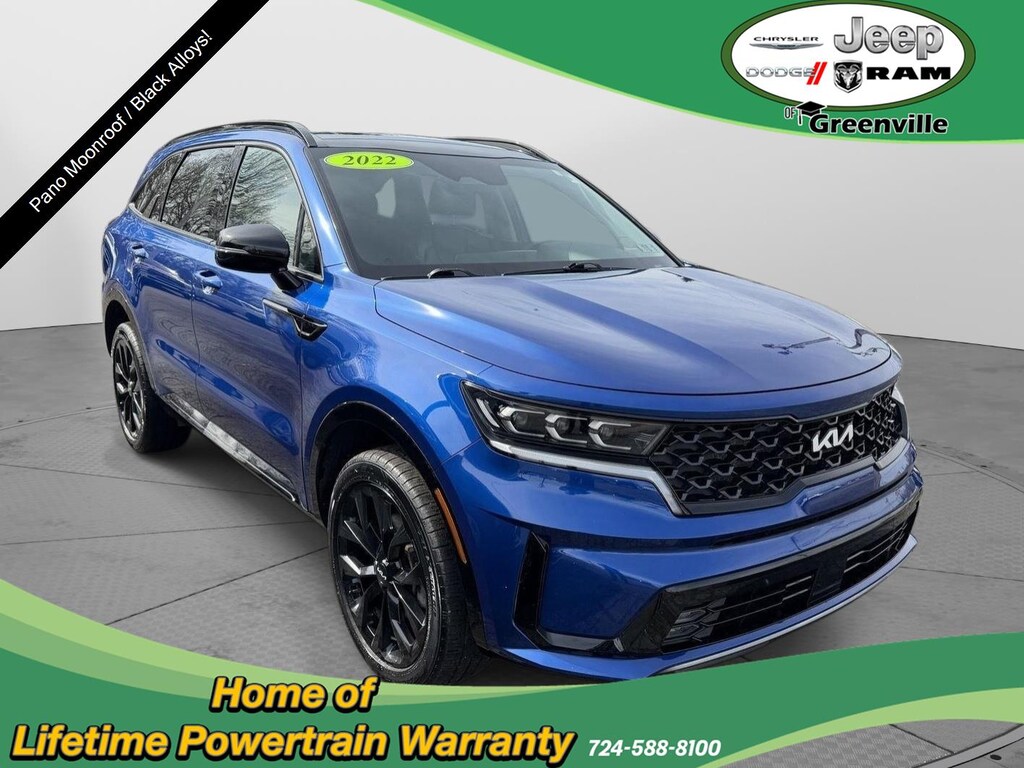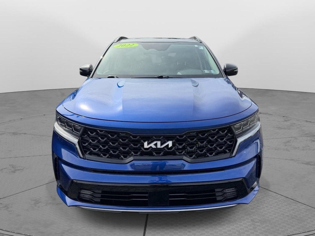 This 2022 Kia Sorento SX has a beautiful Sapphire Blue exterior with Black interior. This vehicle has 60,255 miles has been thoroughly inspected by our factory trained service technicians and has been fully reconditioned for immediate delivery. We're happy to provide this Sorento's CARFAX vehicle history report upon request as well.