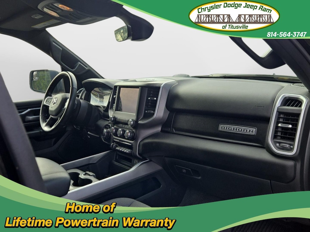 ENGINE: 5.7L V8 HEMI MDS VVT ETORQUE, TRANSMISSION: 8-SPEED AUTOMATIC (8HP75), QUICK ORDER PACKAGE 27Z BIG HORN, 3.21 REAR AXLE RATIO, WHEELS: 20 X 9 ALUMINUM CHROME CLAD (WRK), TIRES: 275/55R20 BSW ALL SEASON, DIAMOND BLACK CRYSTAL PEARLCOAT, BLACK, DELUXE CLOTH BUCKET SEATS, GVWR: 7,100 LBS, BIG HORN LEVEL 2 EQUIPMENT GROUP, ANTI-SPIN DIFFERENTIAL REAR AXLE, TRAILER BRAKE CONTROL, REAR WHEELHOUSE LINERS, FRONT LICENSE PLATE BRACKET, RADIO: UCONNECT 4 W/8.4 DISPLAY, REMOTE START SYSTEM, MOPAR FRONT & REAR RUBBER FLOOR MATS, PARKSENSE FRONT/REAR PARK ASSIST W/STOP, 115V AUXILIARY POWER OUTLET